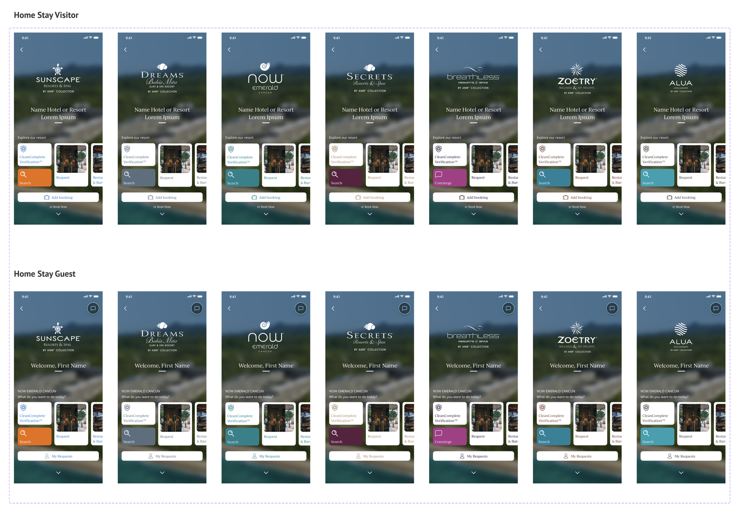 Cada una de las diez marcas tenía su propia personalidad, y la app debía reflejar esa identidad sin perder la cohesión. Se trabajó en una dirección de arte flexible que permitiera ciertos atributos visuales de cada hotel dentro de un marco unificado, asegurando que la experiencia digital estuviera alineada con la experiencia física.